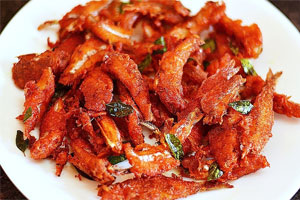 Clean anchovies well, rinse it twice at least in turmeric water and take it in a mixing bowl. Add all other ingredients listed under 'to marinade'. Mix well first then sprinkle little water and mix well. Fish should be coated well.