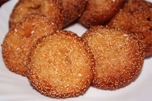 To be noted: It is very important to fry it only in this method to get perfect layered badushas : First heat oil in Nutricook 24 cm frying pn – check by adding a pinch of the batter if it rises immediately then that is the correct stage. Now add some 3 badushas and immediately switch off the stove. Let the badushas get cooked in the preheated oil….When the shh sounds leaves and the bubbles disappear, then switch it on. Keep in medium low flame, flip it to other side once it gets browned on one side and fry until golden brown (Do not fry in high flame). Follow the same procedure for frying the remaining badushas.