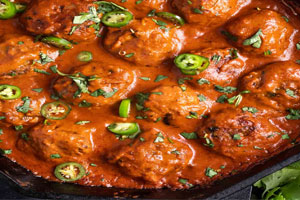 Clean the chicken and make incisions with sharp knife on breast and leg pieces. Apply a mixture of red chilli powder, lemon juice, garam masala powder, ginger garlic paste and salt to the chicken and leave aside. Preheat Nutricook 24 cm pot and grease it with little oil and add chicken and bake it for 3 minutes. remove and keep aside. Preheat 20 cm Nutricook pot and add whole garam masala. then add Let it crackle. Then add ginger garlic paste and chopped green chillies. Cook for 2 minutes. Add tomato puree, red chilli powder, garam masala powder, salt and one cup of water. Bring to boil. Add sugar or honey and powdered kasoori methi. Add cooked chicken pieces. Add butter. Simmer for 5 minutes and then add fresh cream. Serve hot with paratha or naan.