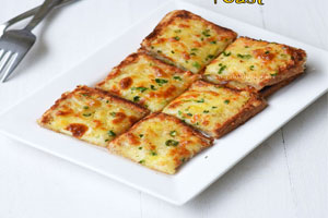 Cut green chilies finely, cube the capsicum – set aside. Take grate cheese in a bowl and mix green chilies and capsicum with it. Add pepper and salt. Take the bread slice and apply the cheese chili mixture. Sprinkle seasoning. Meanwhile preheat 24cm Nutricook and using nutricook baking method place the bread slice and bake for 3-5mins until cheese melts. Cut diagonally and serve hot with tomato sauce!