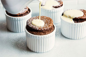 Break the two eggs and separate the yolks from the egg white liquid. Beat and mix the yolks with the Choco hazelnut spread well. Take a separate bowl, beat egg whites with salt on medium speed. Continue beating at high speed until the egg whites hold stiff glossy peaks. Add this foam to the previous mixture of yolks and Choco hazelnut spread and stir well. This mixture should be light and bubbly and have an even coloring without egg white streaks. Preheat Nutricook 24 cm frying pan with grater placed in it upside down. Pour the mixture in a cupcake mold and bake it in for 15 minutes. open the lid and check for fully baked by putting a fork in the cupcake mold. If nothing sticks to the fork your Chocolate Souffle is ready.
