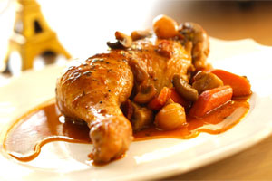 Clean and chop the onions. Clean apples and cut them in quarters and then in to small pieces. Place the legs, onions and apples in to Nutricook 24 cm pot and add 1 ½ cups of water. Cook in medium flame till the visual thermo indicator reaches green field and reduce the flame and cook it for 30 minutes. Remove the chicken legs and keep them in a warm place. Stir the liquid to obtain a sauce. Place the chicken legs in the deep serving bowl and add pepper and salt to taste. If you wish add few drops of extra virgin olive oil. Cover with the sauce obtained. Sprinkle with parsley and curry leaves on top. Serve warm.