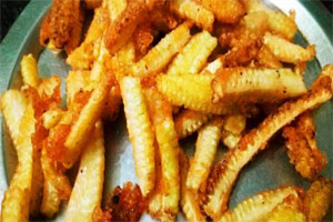 Take the Nutricook 24 cm frying pan preheat it and pour oil for deep frying. Once oil is ready, put the pieces and fry it till golden brown and take it from the pan and serve it hot. Crispy rava chips is ready for serving.