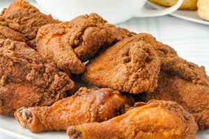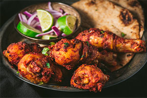 Cut the whole chicken into big pieces. In a bowl, mix 1 tablespoon of red chilli powder, salt,