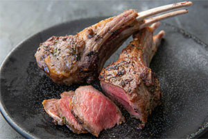 Chop thyme and garlic together. Wash lemon and remove the rind. Chop the rind very finely. Mix the rind and the herbs together in a bowl. Season the lamb with the fresh herb mix. Cover the 24 cm cookware and heat it on medium flame till the visual thermo indicator reaches green field. Place the lamb chops and fry them until golden brown on both sides. Sprinkle the herbs before removing from the heat. Add salt and pepper to taste. Place the chops in the serving bowl and garnish with lettuce leaves. Serve hot.