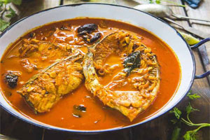 Add 3 Tbsp of coconut oil and add the onion tomato paste and fry for 4 minutes in medium flame and 3 minutes on low flame and add 2 tsp of ginger garlic paste and cook on medium heat till oil separates and add 1 ½ tsp of coriander powder, 1 ½ tsp of chilli powder, ¾ tsp of cumin powder, ½ tsp of salt and ½ cup of water and fry for 2 minutes on low heat. Add coconut milk 250ml and cook for 3 minutes on medium heat and add 1 cup of water to it. Add the marinated fish, cover and cook the dish for 5-7 minutes on low heat and open and add ½ tsp of garam masala and then add 2 Tbsp of chopped coriander leaves and stir it and cook for 2 minutes and put off flame.