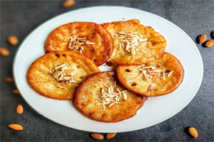 Boil oil for deep frying in Nutricook and put the designed batter and fry it till golden brown and remove from oil and put it in to the syrup and allow it to soak it for 10 minutes. Your Atta Cake Sweet ready for serving and tasting.