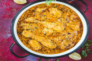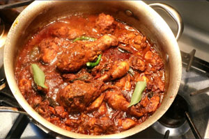 Clean, wash and skin the chicken. Cut the chicken in to 12 to 14 pieces. Soak poppy seeds in 1 cup warm water for 10 minutes. Grind green cardamom and grated coconut. Grease with oil and preheat Nutricook 24 cm on medium flame and add sliced onions and ginger paste and stir for 15 seconds. Add chicken pieces and cook for 5 minutes stirring constantly. Make sure not to color the chicken. Stir the grounded paste and add 1 cup of water. Add salt and bring to boil. Reduce flame and add beaten curd. Simmer for 5 minutes. add the fresh cream. Serve hot with rice, chapati or parathas.