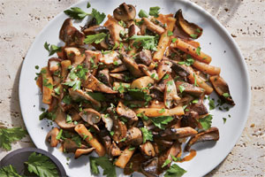 Fresh wild Mushrooms with Grilled Prawns – Continental style