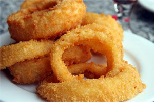 Mix corn-starch with the flour and add baking powder, black pepper, and cayenne pepper to it. Stir it well. Sprinkle and add water. Whisk the batter until it turns smooth and thick. Take Nutricook 16 cm pot and preheat it. Add oil for deep frying. Once oil is ready dip all the onion rings in the batter and then coat with the breadcrumbs. Fry the onion rings till golden brown. Your onion rings are ready!