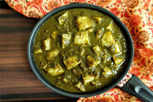 Preheat Nutricook 20 cm pot and cook the spinach. Remove and make puree of the spinach leaves. Cut 4 onions and cook on medium flame. Grind the other onion with garlic flakes to a fine paste. Add this paste to the onions. Also add the puree and the spice masala powders. Add some water if needed. Let it boil for a minute or two. Cut the paneer cubes of your desired size and add it to the prepared Palak and cook for 2 minutes. Serve hot with rice or roti.